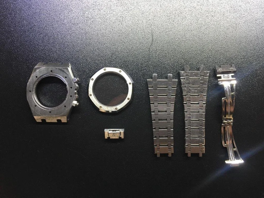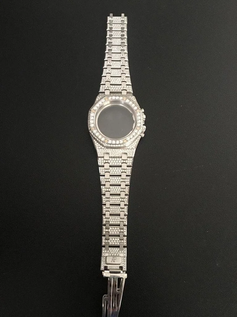 The watch is meticulously disassembled by our specialists. We then utilize advanced laser marking on each component to ensure flawless symmetry and exact stone placement.